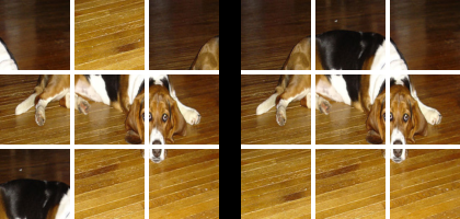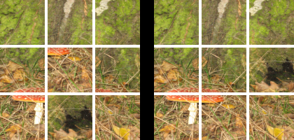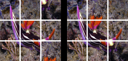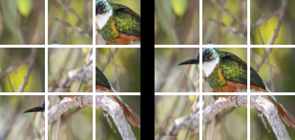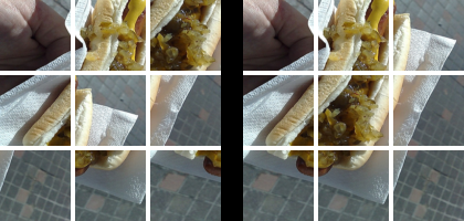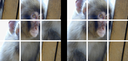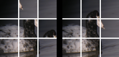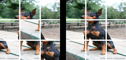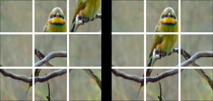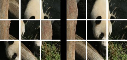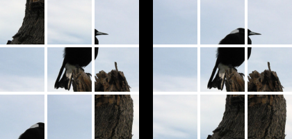 Each patch is referred to by its row and column. For example, (0,0) refers to the patch in row 0, column 0, i.e. top-left patch is labelled as (0,0). Bottom right is (2,2).